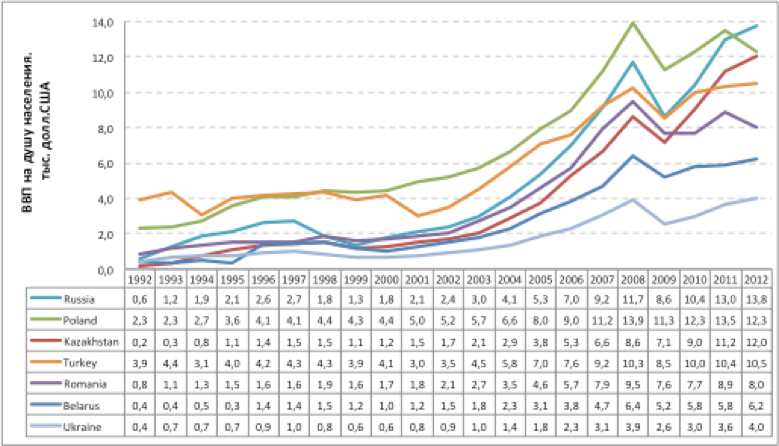 Украина конечно же еще долго не сможет претендовать на высокие показатели развитых стран. Но успешно конкурировать с территориальными соседями просто обязана. А вот с этим-то у Украины очень большие проблемы. С 1992 года, первого полностью «независимого» с момента распада СССР года, среднедушевой ВВП нашей страны вырос всего лишь в десять раз. Да, именно всего лишь, так как россиянам удалось «подорожать» в двадцать раз. Когда-то Украина превышала по этому показателю Китай и Казахстан, а сейчас намного отстала уже и от них.