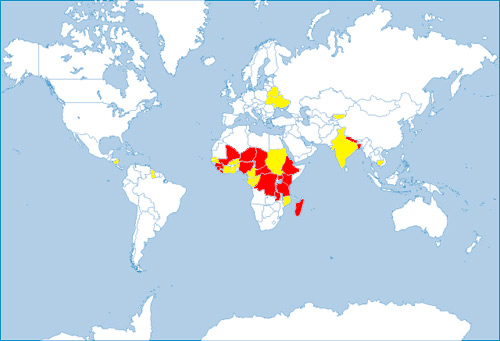 На нижеприведенной карте красным отмечены страны с большей, чем в Украине, долей бедного населения, а желтым на уровне или с немного меньшей