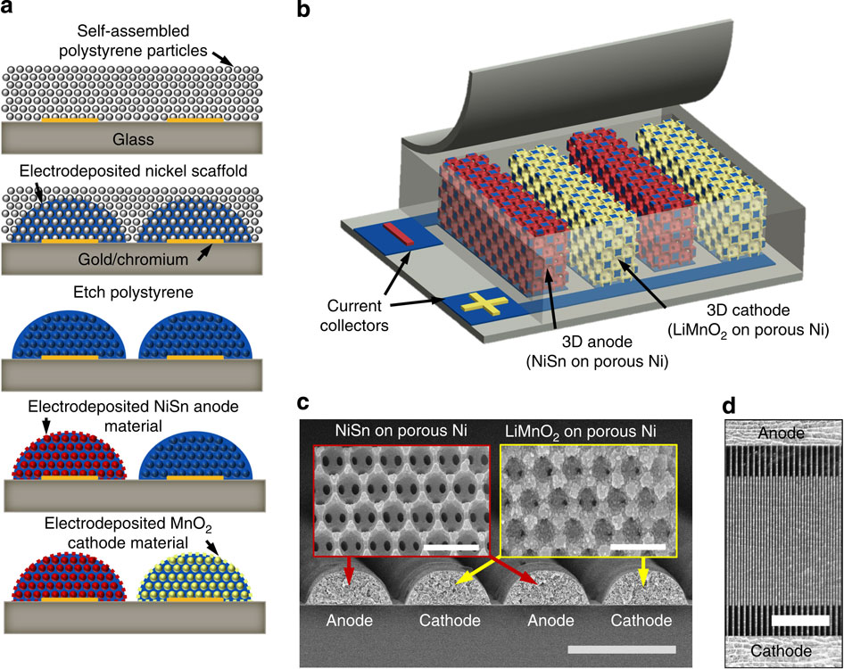 Исследователи утверждают, что им удалось создать микробатареи, которые совмещают лучшие качества конденсаторов и традиционных аккумуляторов. В них используется так называемая пористая трёхмерная микроструктура для анода и катода, что существенно увеличивает их площадь и, соответственно, скорость разряда (выходную мощность) и заряда. Ученые интегрировали эти компоненты особым образом на микроуровне, что позволило добиться интересных свойств. Созданные микробатареи могут питать сенсоры или использоваться для вещания радиосигналов на расстояния в 30 раз длиннее при тех же габаритах, или давать ту же производительность, но обладая в 30 раз меньшими размерами. Что ещё важнее, новое изобретение заряжается в тысячу раз быстрее по сравнению с традиционными технологиями. Из характеристик новых микробатарей стоит выделить плотность мощности до 7,4 мВт/(см2*мкм), что сравнимо с показателями наилучших суперконденсаторов, а также в две тысячи раз превышает показатели других микробатарей.