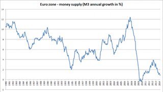 Заседание Европейского центрального банка намечено на 5 июня.Рост денежной массы M3 в годовом выражении в последние месяцы едва поднимался выше 1%. Для сравнения, в период бума в 2007 г. показатель поднимался выше 12%. Теперь же все выглядит иначе: в марте рост составил 1%, а в апреле и вовсе 0,8%. Раньше для ЕЦБ приемлемым считался рост на 4,5%.