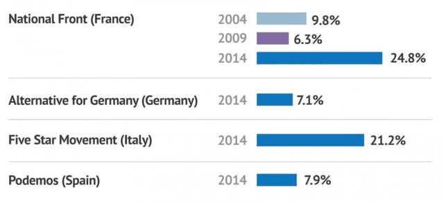 Аналогичная ситуация наблюдается также в Великобритании, Греции, Италии и Франции. Признаки перемен в прежнем политическом статусе-кво появились и в Германии.