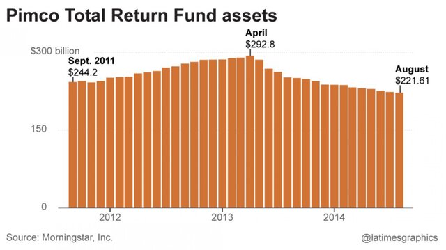 В конце прошлой недели все они были буквально ошарашены новостью, что легендарный Билл Гросс покинул компанию. Почему его уход так сильно беспокоит участников рынка? Дело в том, что флагманский фонд PIMCO - Total Return - присутствовал практически во всех сегментах финансового рынка, пишет издание BusinessInsider. Фонд стал одним из немногих, чей тикер среди трейдеров ассоциировался с надежным вложением. Они часто говорили:"Почему бы тебе просто не купить своим клиентам P-Tax". P-Tax - сокращенное название от PTTAX. Кроме того, этот фонд был одним из крупнейших в мире по объему активов, а значит и число инвесторов было запредельным. Как раз поэтому новость об уходе Билла Гросса ставит под угрозу дальнейшую судьбу фонда, ведь именно эта личность долгие годы являлась олицетворением фонда.
