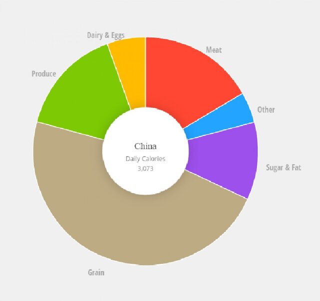 Например, жители Индии едят меньше мяса, чем представители других стран. Американцы потребляют больше всех сахара и жира. А среднестатистический китаец сейчас съедает в два раза больше пищи, чем в 1961 г.