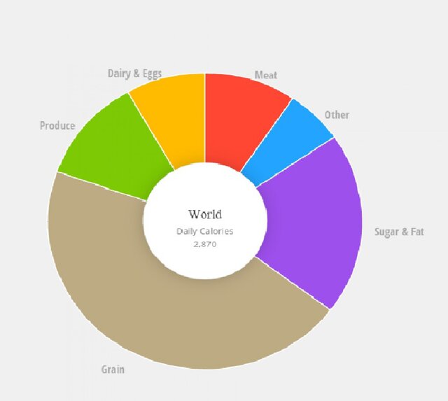 В 2011 г. пищевые ресурсы в мире составляли около 2 870 калорий на человека в день согласно данным Продовольственной и сельскохозяйственной организации ООН. Состав этих ресурсов следующий: