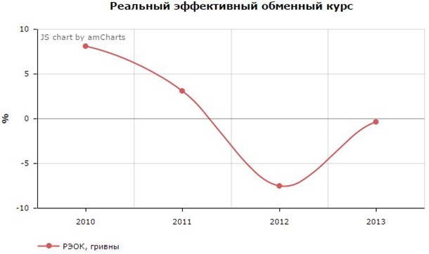 За четыре года реальный эффективный обменный курс гривны вырос лишь на 3,3%, при этом в 2012 и 2013 годах он снижался. Это – заслуга политики низкой инфляции и стабильного курса национальной валюты.