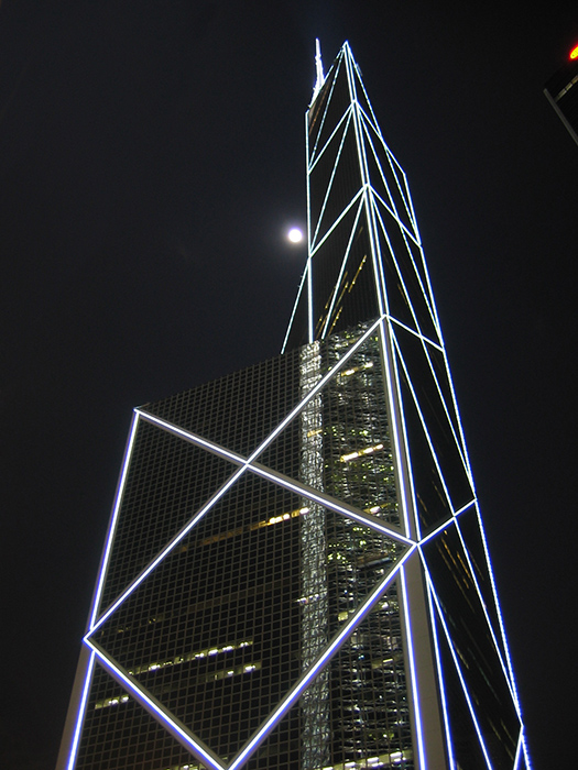 Построенный в 1990 году 315-метровый (с учетом двух антенн высота здания достигает 367 метров) небоскреб Банк Китая на протяжении 3 лет считался самым высоким зданием Азии. От большинства других небоскребов гонконгскую башню отличает ее необычный футуристический дизайн, благодаря чему здание стало крайне популярным среди жителей и туристов.