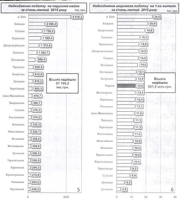 За счет акциза с розничной торговли и налога на недвижимость местные бюджету по состоянию на 1 марта получили 541,5 млн грн и 21,2 млн грн, соответственно. В среднем каждый украинец заплатил 12,6 грн розничного налога.