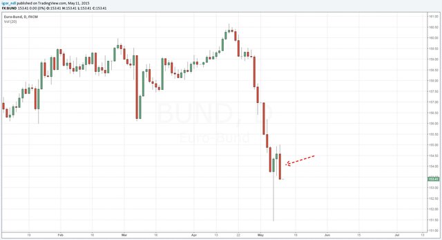 В Европе в понедельник инвесторы снова играли на понижение цены на облигации Германии, причем продажи были достаточно мощными. Достаточно взглянуть на динамику:
