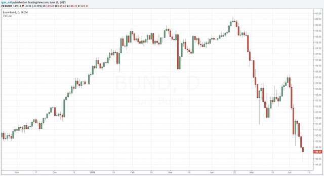 Стоит отметить достаточно тесную связь долговых рынков Европы и США и то, что движения на них сейчас фактически игнорируют фундаментальную составляющую, то есть рынок гособлигаций живет как бы своей жизнью.