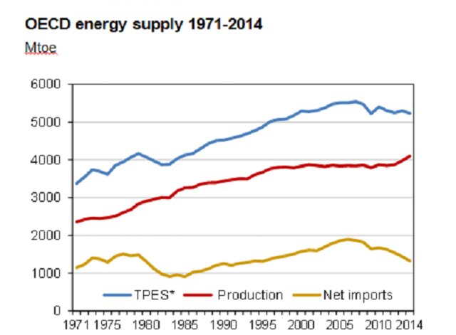 Мировая экономика. Производство энергии в 34 странах-членах ОЭСР превысило 4 000 млн т нефтяного эквивалента в 2014