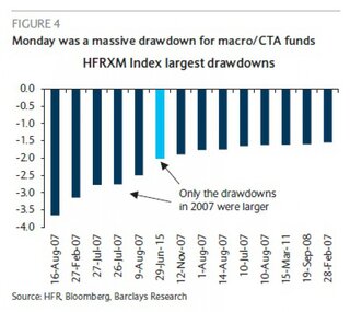 В отчете банка отмечается, что за последние недели хедж-фонды, использующие стратегии, основанные на анализе макроэкономических тенденций различных стран, активно наращивали позиции на мировых фондовых рынках, в том числе и на европейском. В результате объем приобретенных активов вырос до рекордного с декабря 2014 г. уровня.Однако события вокруг Греции спровоцировали обвал на мировых биржах, в первую очередь европейских, что стало причиной значительной переоценки их позиций в худшую сторону.