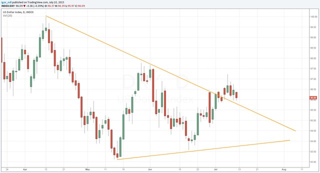 Стоит также отметить, что на динамику рисковых активов, среди которых и нефть, очень сильно влияет динамика американского доллара.