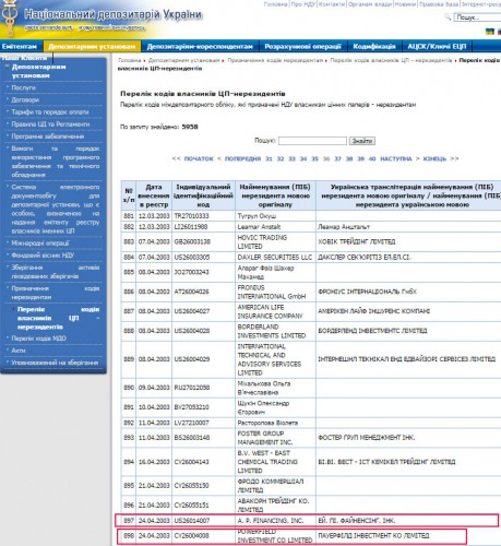 Издание выяснило, что это компания-нерезидент, зарегистрированная в США, штате Колорадо в Колорадо Спргингс. Президентом компании указан Анатолий Писаренко.