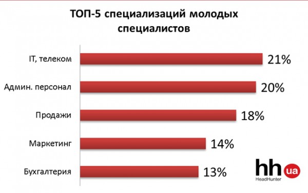 Зачастую молодые специалисты хотят работать административными сотрудниками (секретари, офис-менеджеры, курьеры и др), младшими программистами и младшими QA-специалистами, специалистами по продажам, маркетологами и финансистами.