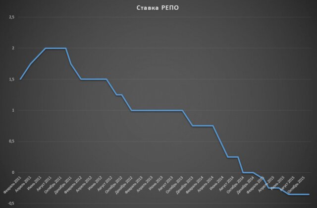 Регулятор объявил о расширении программы выкупа активов на 65 млрд шведских крон (,6 млрд) до 200 млрд крон. Нынешняя программа выкупа активов шведским ЦБ действует до июня 2016 г. При этом ставка по семидневным РЕПО осталась на уровне минус 0,35%.