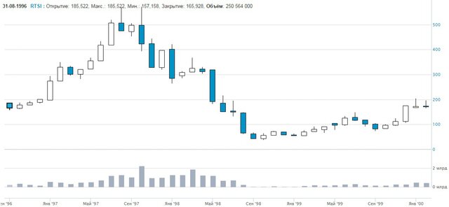 Данные Московской биржи с августа 1996 г. по январь 2000 г.