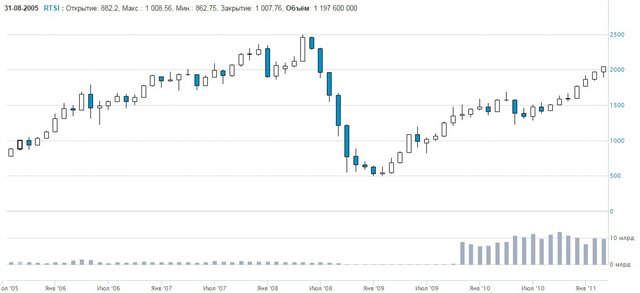 Данные Московской биржи с июля 2005 г. по март 2011 г.
