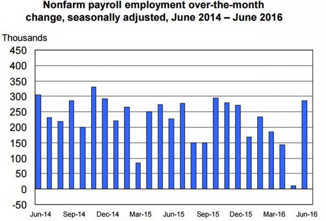 В экономике США в июне 2016 г. было создано больше рабочих мест, чем ожидалось. Данные указывают на то, что темпы роста американской экономики восстанавливаются после низких показателей роста в I квартале.