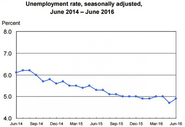 Уровень безработицы в США в июне повысился с майских 4,7% до 4,9%. Эксперты ожидали повышения показателя до 4,8%. Рост показателя безработицы связан с тем, что доля участия населения страны в рабочей силе в июне увеличилась до 62,7% по сравнению с 62,6% в мае.