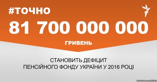 Дефицит Пенсионного фонда Украины в 2016 году составляет 82 млрд гривен.