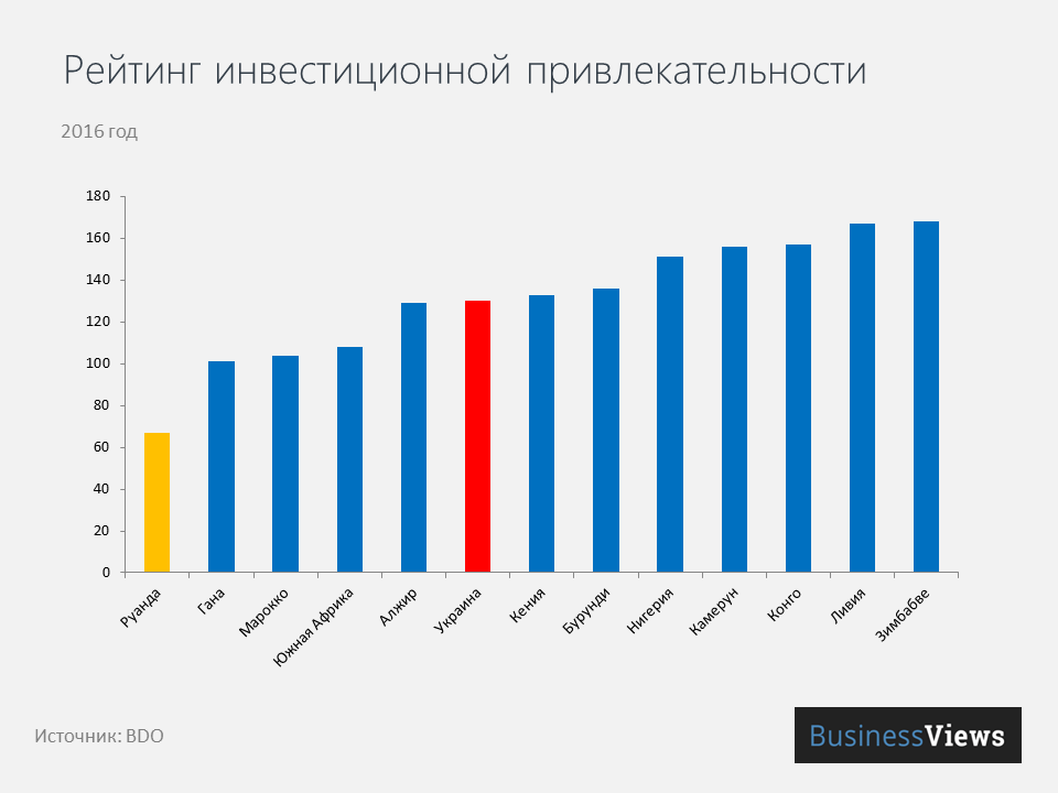Руанда в 2 раза привлекательнее для инвесторов, чем Украина