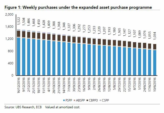 Всего за отчетную неделю ЕЦБ купил во всех сегментах рынка бумаги на сумму 0,7 млрд евро (неделей ранее еще 1,6 млрд евро).