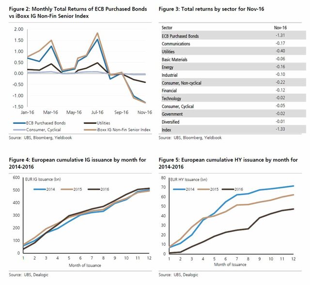Один из главных игроков - Европейский центральный банк, от имени которого в еврозоне покупки совершают шесть центральных банков. Так вот, за неделю, завершившуюся 16 декабря, ЕЦБ покупал в рамках своей программы еще 6 различных корпоративных бумаг.
