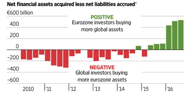 Отметим и еще один любопытный момент. В этом году еврозона столкнулась с самым сильным оттоком капитала за всю свою историю, пишет The Wall Street Journal. Отток капитала отчасти привел к падению евро, сейчас европейская валюта торгуется в паре с долларом на минимуме за 14 лет. Отметим, что данные по оттоку капитала приведены пока только за первые 9 месяцев года, так что показатель будет еще хуже. Глобальные инвесторы продали номинированные в евро активы на $ 32,5 млрд. Таким образом, общая сумма оттока средств превысила $ 549 млрд, или почти 3% ВВП еврозоны.