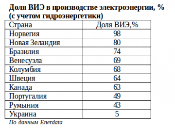 В Украине потенциал ВИЭ почти не задействован. Без учета гидроэнергии, доля альтернативной энергетики в 2015 году составила около 1% от всей выработанной электроэнергии. По оценкам экспертов, потенциальные возможности ВИЭ позволяют вырабатывать в Украине 30-40% энергии на возобновляемых источниках.