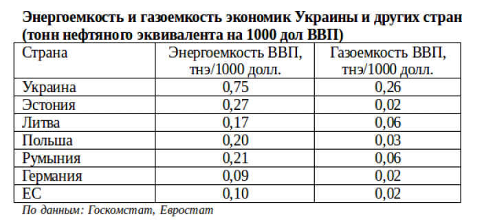 Кроме того, украинская экономика крайне энергозатратна. На производство единицы продукции Украина тратит в 8 раз больше энергии, чем в странах, достигших результатов в области энергосбережения.