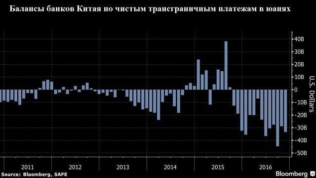 За 11 месяцев 2016 г. из Китая было выведено $ 309 млрд через платежи в юанях, и это крупнейший ежегодный отток с 2010 г. По статистике Bloomberg, общий размер оттока составляет $ 762 млрд.