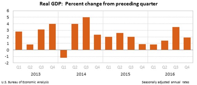 Рост ВВП США замедлился до 1,9%в IV квартале 2016