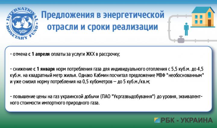 Также несогласованным пока остается часть энергетических требований. В частности, МВФ настаивает на отмене нормы, о которой широко заявлял премьер-министр Владимир Гройсман в конце прошлого года, а именно – возможности платить “коммуналку” в рассрочку.