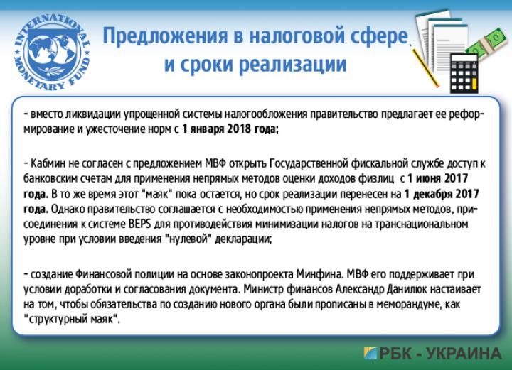 «Про ликвидацию «упрощенки» не идет речь. Это чистая провокация, не надо на нее поддаваться. Не предусмотрено этого», – ранее категорически заявил министр финансов Александр Данилюк. По информации РБК-Украина, в проекте Меморандума, правда, об этом речи уже нет, но МВФ продолжает настаивать на ее реформировании.