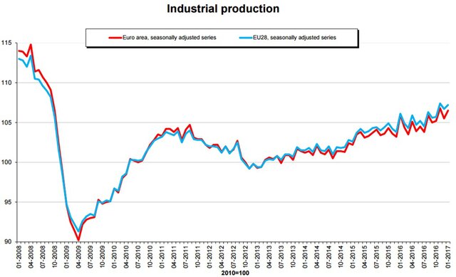 ЕС. Промпроизводство в еврозоне выросло меньше прогноза в январе 2017 г.