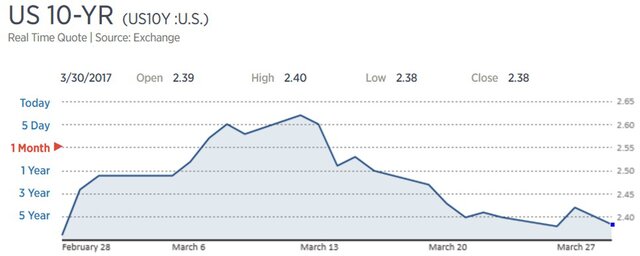 Доходность 10-летних казначейских облигаций США снизилась до 2,3801%. В то же время доходность 30-летних бондов опустилась до 2,9856%.