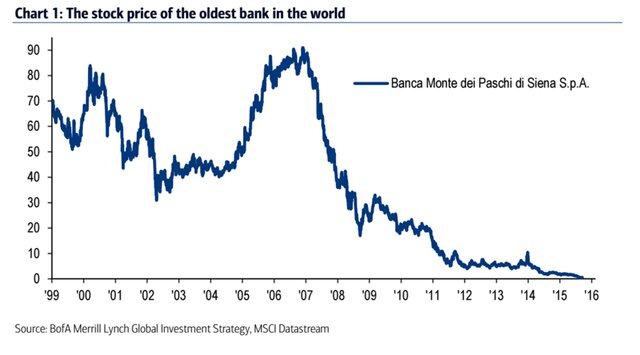 Динамика котировок бумаг старейшего банка мира Monte dei Paschi di Siena