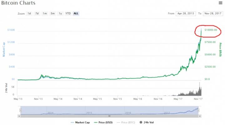 Курс биткойна побил рекорд и превысил $10 тыс 28 ноября 2017