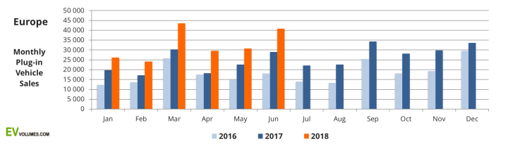 В процентном соотношении рост составил 42%, что на 195 тысяч электрокаров больше, чем за тот же период в прошлом году. Рост значительно ускорился во втором квартале 2018 года. За первые три месяца прибавка в количестве показывала 40%, а за следующие три месяца она еще выросла до 45%.