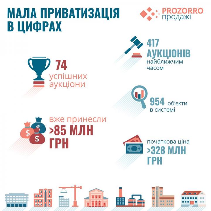 Украина. 74 аукциона по объектам малой приватизации дали сумму в 85,6 млн грн в 2018