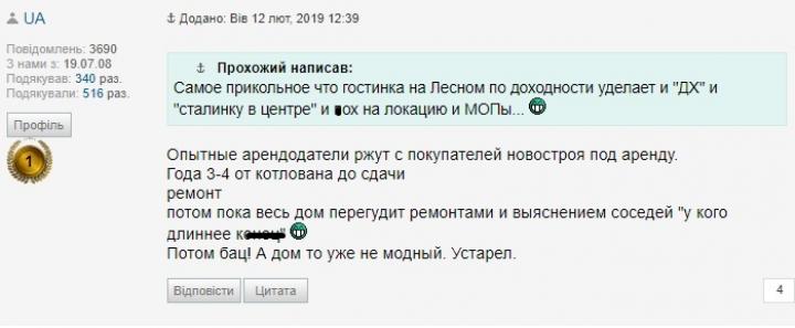 При этом, как считает пользователь под ником UA, новостройка может со временем стать «не модной». А это значит, что и зарабатывать на аренде будет попросту не выгодно.