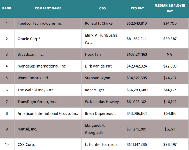 США. Некоммерческая организация As You Sow создала рейтинг CEO с чересчур высокими зарплатами
