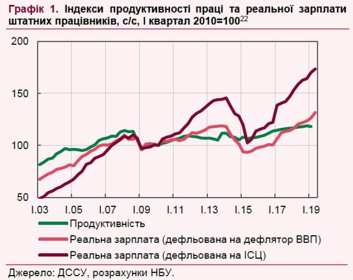В последние годы рост реальных заработных плат существенно ускорился. Как объясняют в НБУ, это обусловлено их возобновлением после резкого падения во время кризиса 2014-2015 годов.
