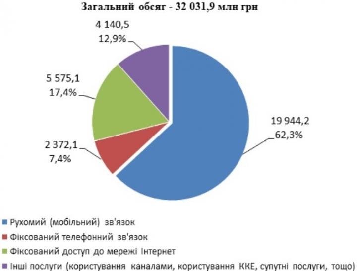 В частности, согласно отчету, 62,3%, или 19,9 млрд грн, приходится на услуги мобильной связи. Помимо этого, 17,4%, или 5,57 млрд грн дохода, получили телеком-компании, предоставляющие услуги фиксированного доступа к интернету.