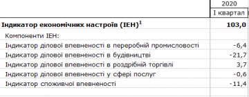 В Украине упал индекс индикатора экономических настроений до 103,0% в I кв 2020
