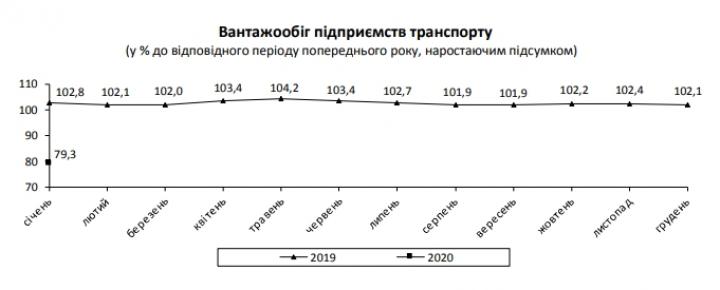 В Украине зафиксирован обвал грузооборота предприятий транспорта на 20,7% в январе 2020