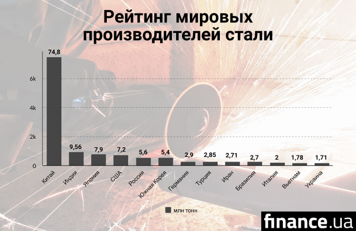 Украина опустилась на 13-е место в рейтинге производителей стали
