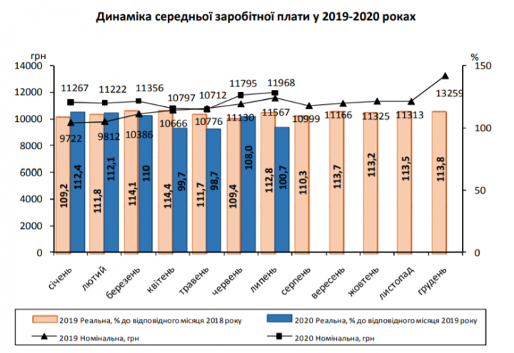 - Средняя номинальная заработная плата штатного работника предприятий, учреждений и организаций Украины в июле 2020 года составила 11 804 грн.