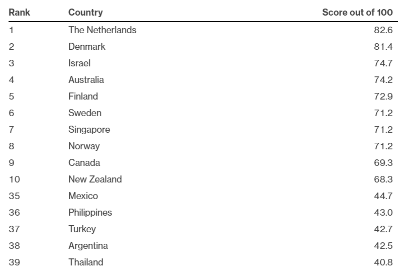 Об этом сказано в материале These Are the World’s Best (and Worst) Pension Systems in 2020, пишет bloombergНидерланды и Дания лидируют по системе пенсионного обеспечения класса А.