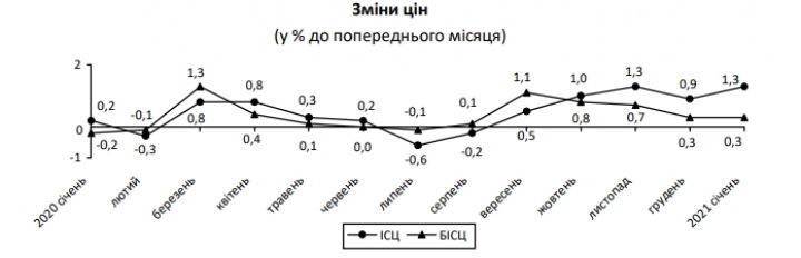 В Украине ускорилась инфляция и выросли цены на 1,3% в январе 2021